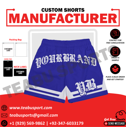 Custom Blue Mesh Shorts – “YOURBRAND YB” Gothic Lettering Edition