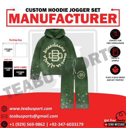 Custom Green Acid Wash Sweatsuit – Screen Print Logo Streetwear