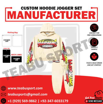 Custom Cream Hoodie Jogger Set – Premium Screen Print Streetwear Manufacturer