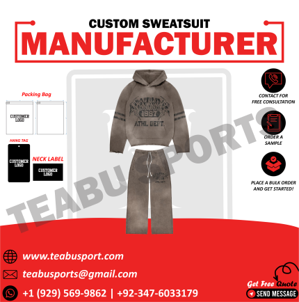 Custom Grey Sweatsuit – Embroidery, Distressed Logo & Screen Print