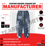 Create a standout collection with our custom navy blue acid wash hoodie and jogger set, featuring vibrant screen printed artwork on a uniquely washed fabric. Designed for edgy streetwear labels, this set offers both comfort and visual impact, making it perfect for fashion-forward audiences.