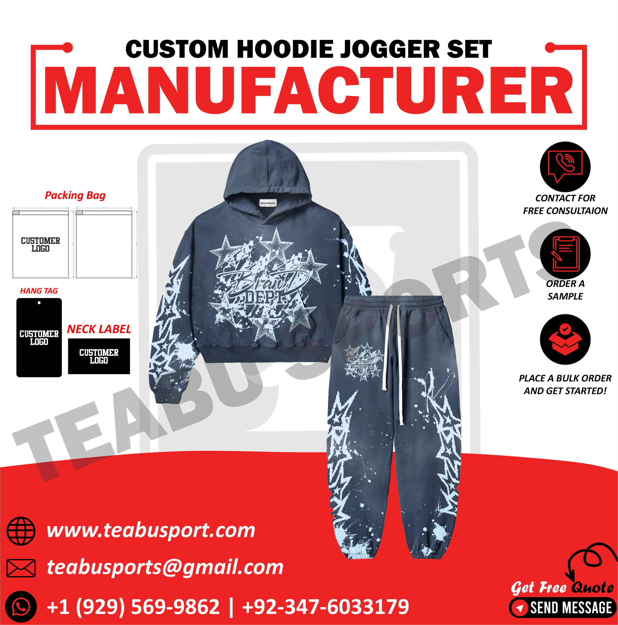 Bring your streetwear vision to life with custom manufacturing. Contact us today for pricing, samples, or free design support!