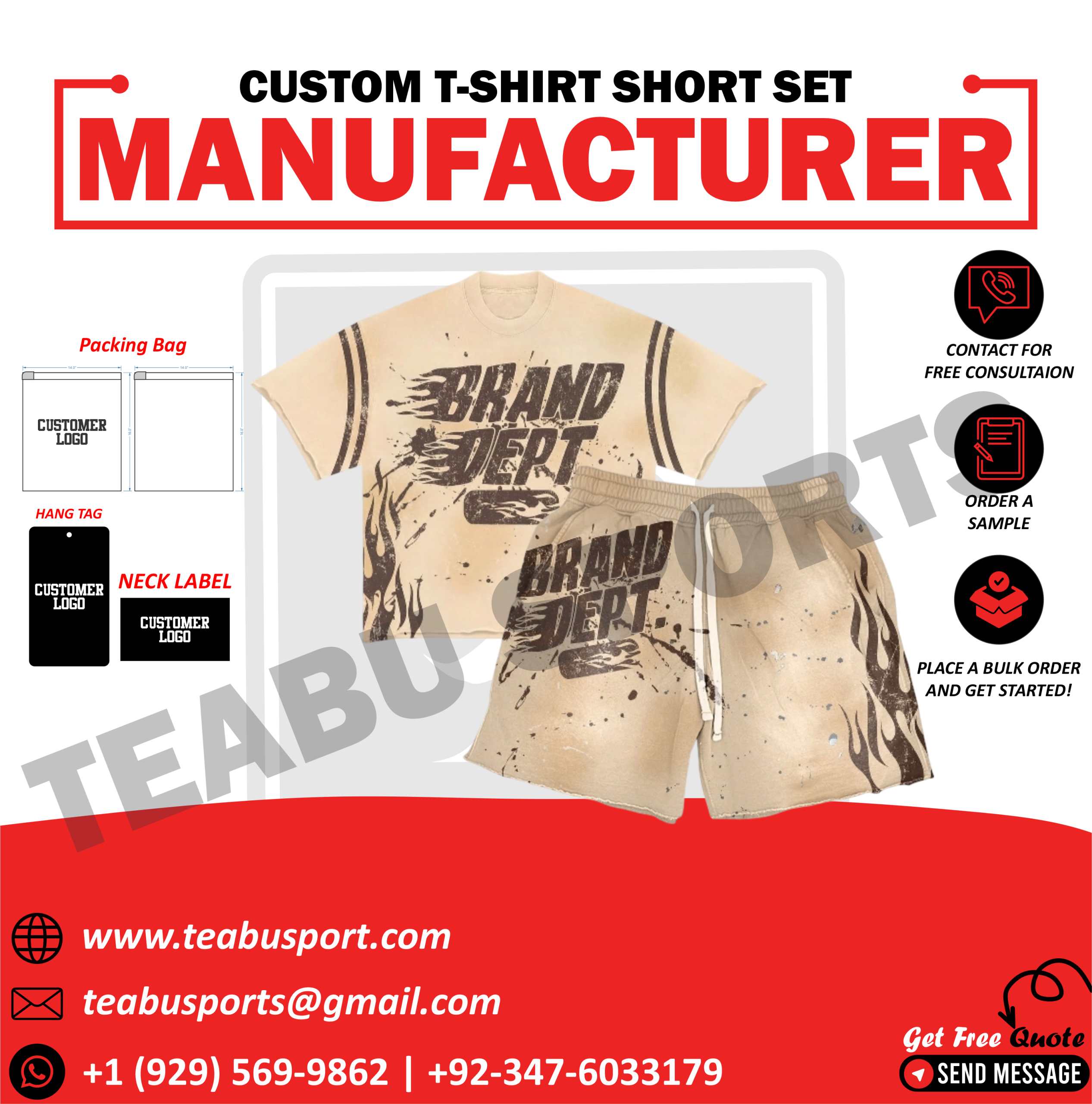 ✔ Matching T-shirt & Short Set with Custom Logo & Design